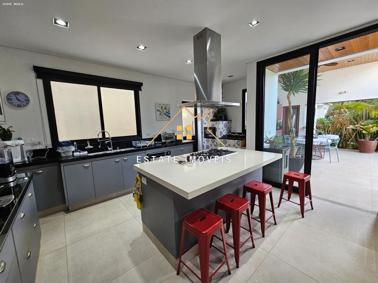 No interior da casa, o conceito aberto integra harmoniosamente três ambientes: sala de TV, sala de estar e sala de jantar. As persianas automatizadas oferecem controle total sobre a iluminação natural em todos os ambientes, enquanto o ar condicionado garante conforto em qualquer estação do ano. A cozinha planejada é equipada com modernos eletrodomésticos e detalhes como forno de pizza e fogão a lenha que encantam até mesmo os chefs mais exigentes. E para aqueles dias mais frios? Uma acolhedora sala de lareira externa proporciona o cenário perfeito para reunir-se com seus entes queridos.