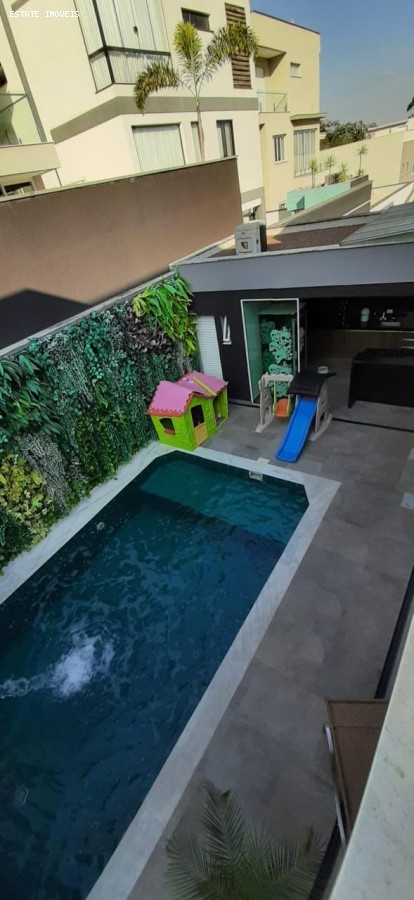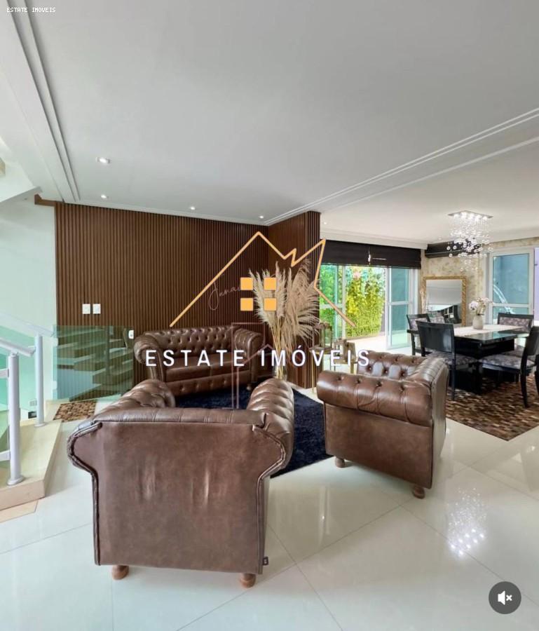 São 4 dormitórios, sendo 3 suítes, suíte do casal com closet e banheira, todos os quartos com ar condicionado, sala de TV, sala de jantar e sala íntima no andar superior, todas com ar condicionado. Totalizando 07 ar condicionados. Piscina com cascata e aquecedor, Chopeira na área de churrasqueira com 02 saídas de chopp. Área de dispensa no piso inferior, 05 banheiros ( 03 das suítes, 01 lavabo e 01 na área de piscina). Janelas com persianas elétricas, inclusive do janelão (vidro) da escada.