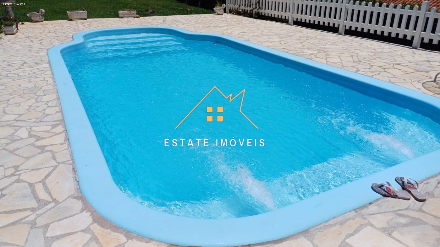 Chácara com 3 dormitórios, todos com a porta balcão 2 banheiros Sala Cozinha Área externa 2 banheiros feminino, com chuveiro 2 banheiros masculino, com chuveiro Lavanderia Rancho com churrasqueira Piscina Poço caipira Uma fantástica vista com nascer e por do sol incrível. Escritura registrada Iptu em dia